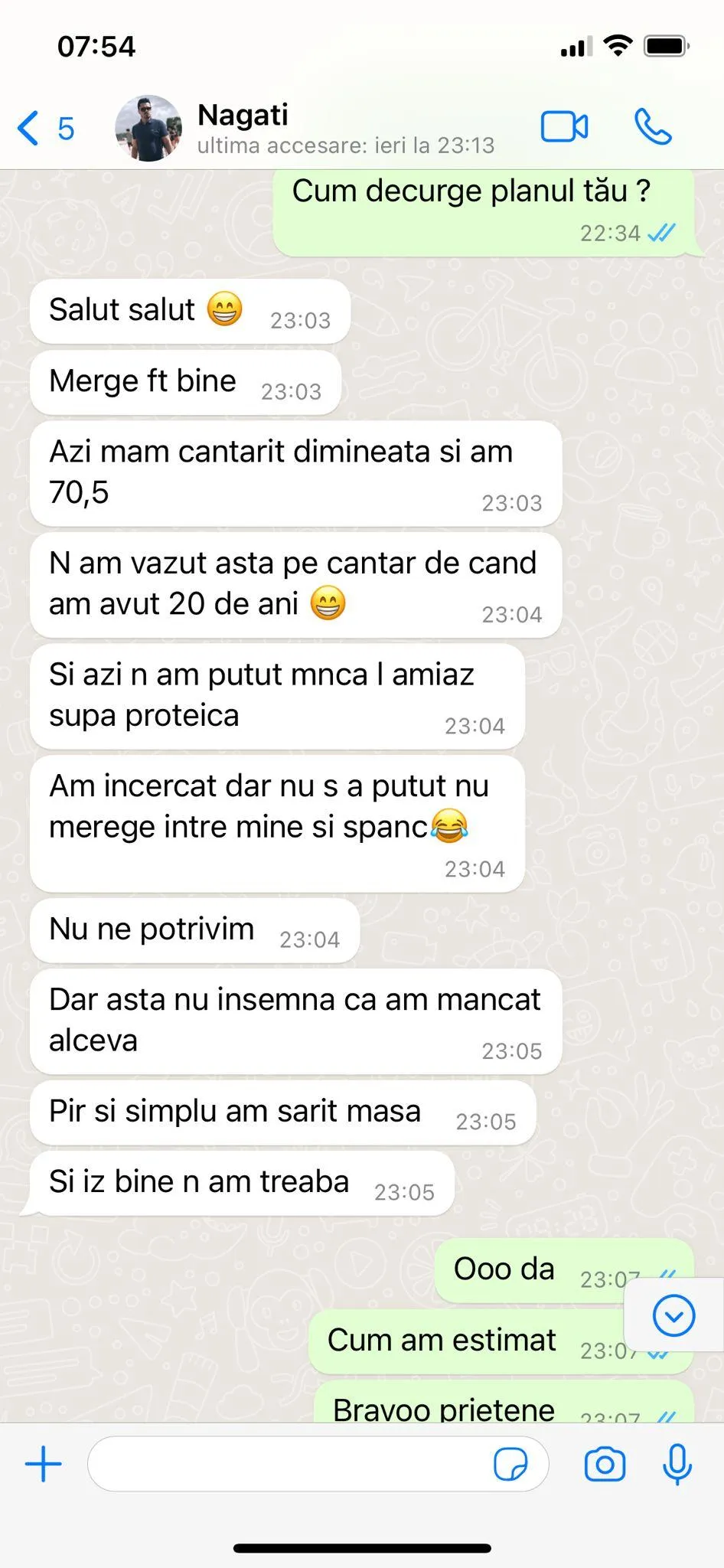Antrenamentul cu greutăți: Construirea masei musculare ajută la arderea mai multor calorii și la menținerea metabolismului ridicat. Includ antrenamentele cu greutăți sau antrenamentele cu greutatea propriului corp, cum ar fi flotările, tracțiunile la bară și genuflexiunile.Îți recomand să faci două antrenamente cu greutăți /săptămână.